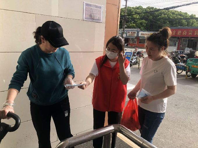 许多社区居民平时出门都是会随身携带口罩,在到人流量多的公共场所时,取出口罩佩戴,也有一些到了贸易市场门口,但是忘记佩戴口罩的社区居民,学生党员们将带到梅园社区的口罩分给要进入贸易市场但没带口罩的社区居民,活动进行的时候,有两位带着孩子的家长准备进入贸易市场,党支部成员提示她们戴口罩时,她们发现忘记携带了,但是很配合学生党员们维持的入场秩序 ,准备回去取口罩,当学生党员递给他们口罩时,她们十分感动,戴好口罩后进入贸易市场。