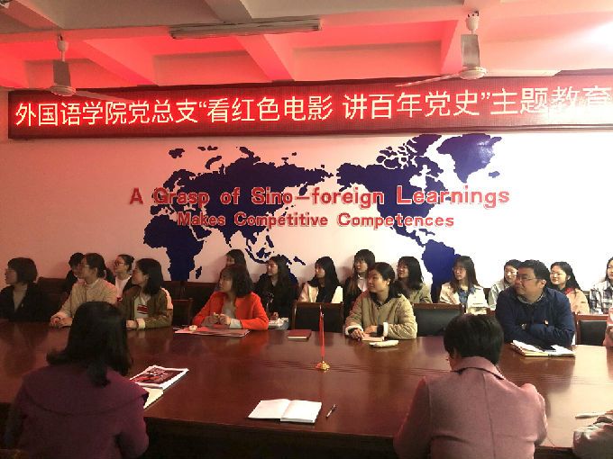 根据学校党委《关于在全校开展党史学习教育的实施方案》的具体要求,4月15日下午13:30,外国语学院党总支组织开展了“看红色电影 讲百年党史”主题教育活动。活动由教师党支部书记董宏宇同志主持,活动内容主要分为观红色电影和党员讲学习党史交流讨论两部分,全体教职工及学生党员共同参与了此次活动。