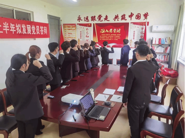 会议伊始,由物联网工程学院学生第一党支部书记王莺同志简单地说明此次答辩的目的,并提出答辩的相关要求。并由学生党员武军凯带领大家一起进行入党誓词的宣誓。