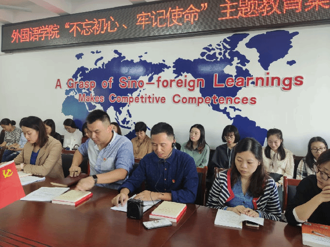 10月10日中午,外国语学院教师党支部、教工党支部、外语学生党支部齐聚一堂,召开了“不忘初心、牢记使命”主题教育集中学习会。活动由党总支副书记俞昊波主持。