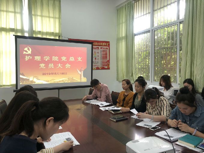2019年5月16日,护理学院党总支召开全体党员大会,会议由党总支副书记胡宇主持。