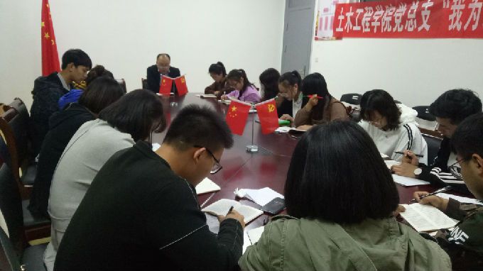 10月25日晚上,土木工程学院党总支在13号楼210党员活动室组织学习《中国共产党章程》,土木工程学院党总支副书记余波主持活动,全体党员发展对象参加本次活动。
