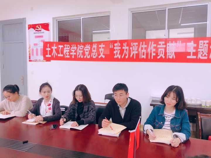 为了更好的发挥党员干部带头作用,使我院全体师生能够以更加积极向上的精神面貌迎接我校即将迎来的本科教学工作合格评估,我院党总支于10月25日在13号楼210会议室举行“我为评估作贡献”主题党日活动。土木工程学院全体师生党员和入党积极分子参加了本次活动。活动由学院党总支副书记余波主持。