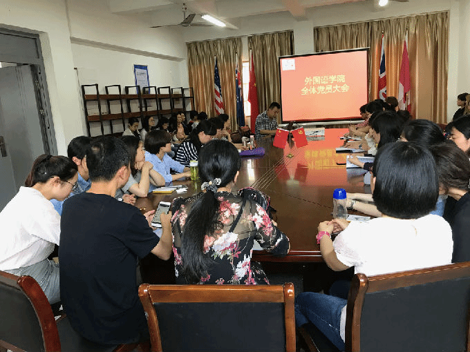 2018年6月1日,在俞昊波副书记和刘荔副院长的共同主持下,外国语学院全体党员大会顺利召开,俞书记宣读了关于开展2018年先进基层党组织、优秀共产党员、优秀党务工作者评选表彰活动。