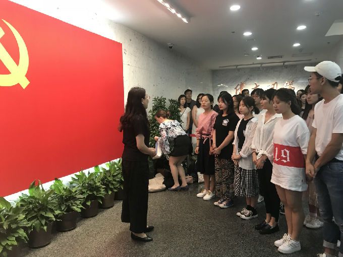 进入馆内,鲜艳的党旗跃入眼中,洋溢着神圣与庄严。新党员们在支部书记的带领下,在党旗前庄严宣誓:“我志愿加入中国共产党,拥护党的纲领,遵守党的章程,履行党员义务,执行党的决定,严守党的纪律,保守党的秘密,对党忠诚,积极工作,为共产主义奋斗终身,随时准备为党和人民牺牲一切,永不叛党。”而后,教师党员们为他们佩戴上党章,在党旗前记录下了这一具有纪念意义的时刻。党总支武蓓蓓书记寄语全体学生党员,立足新时代,发扬我党优良传统,时刻以党员标准严格要求自己。