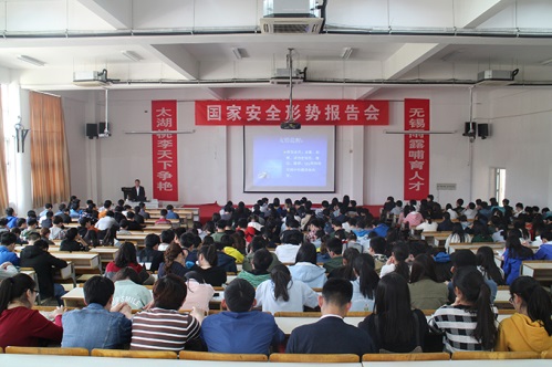 全校8个学院约500名师生聆听了市国安局的梁专家所作的专题报告。梁专家详细讲解了维护国家机密的重要性,列举了来自高校大学生在金钱美色的利诱下背叛祖国、从事外国间谍、盗取国家机密的典型案例,要求大学生学法、知法、普法、执法,维护国家安全。